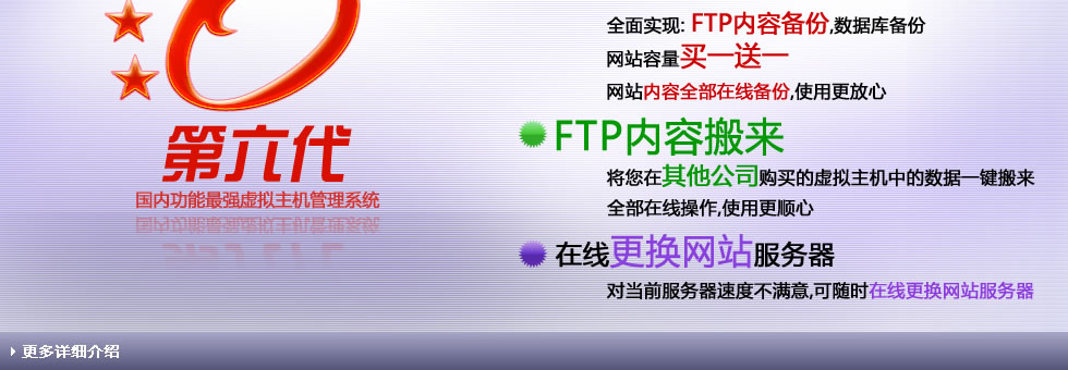 旗胜科技云虚拟主机,功能强大,特点突出、优势明显。主要包括:安全稳定高速的机房环境,详尽完善的主机产品体系,合理低廉的主机产品价格,电信、双线、美国、香港等多线路任意选择,在线网站制作系统 “